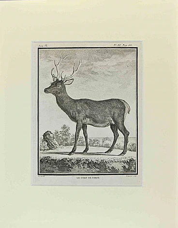Le Cerf De Corse is an artwork realized by Buvée l'Américain in 1771. Etching B./W. print on ivory paper.The artwork belongs to the suite "Histoire naturelle, générale et particulière avec la description du Cabinet du Roi". Paris: Imprimerie Royale, 1749-1771. In good conditions except for the paper yellowed by time.Discover more on Wallector. com
