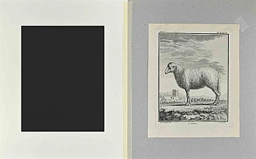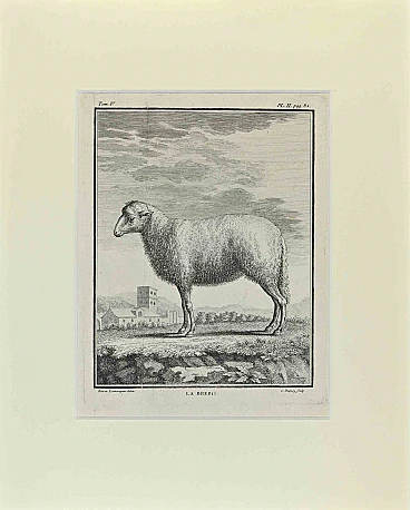 La Brebis is an artwork realized by Buvée l'Américain in 1771. Etching B./W. print on ivory paper.The artwork belongs to the suite "Histoire naturelle, générale et particulière avec la description du Cabinet du Roi". Paris: Imprimerie Royale, 1749-1771. In good conditions except for the paper yellowed by time.Discover more on Wallector. com