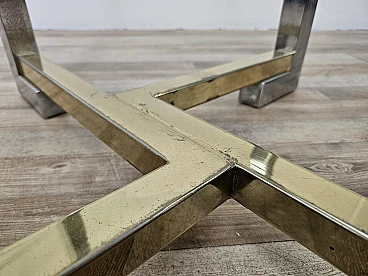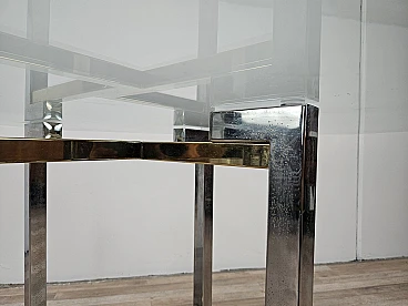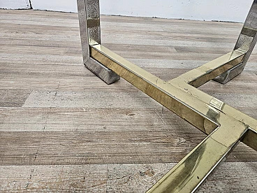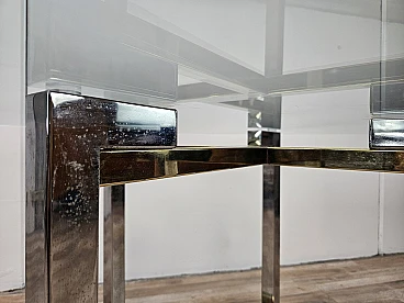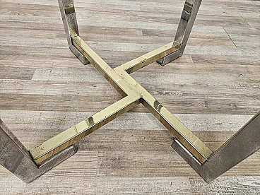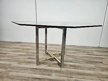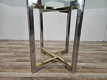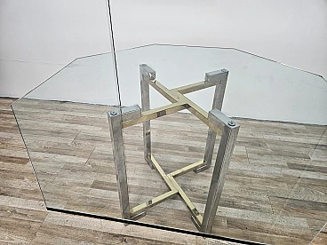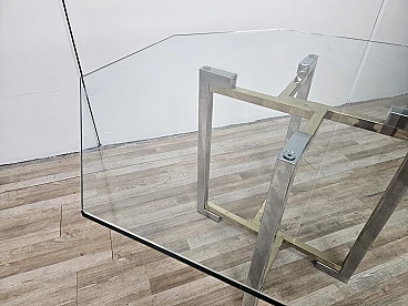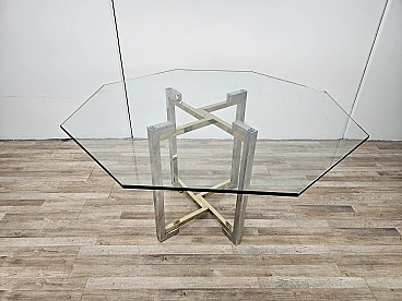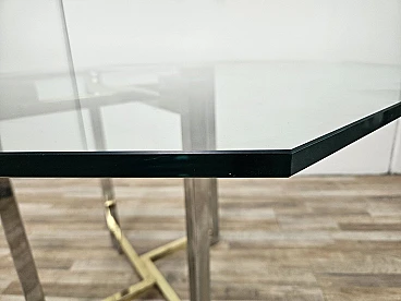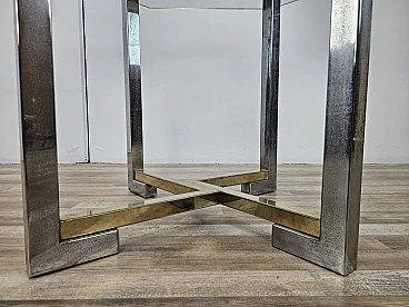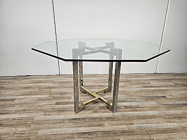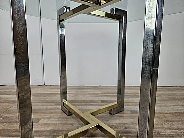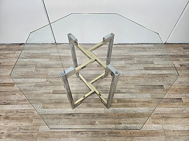 Regency Table in Chromed Metal and Brass with Hexagonal Glass Top, 1970
