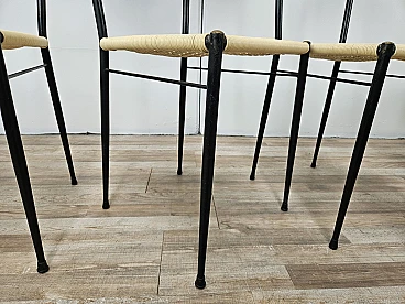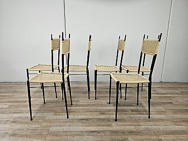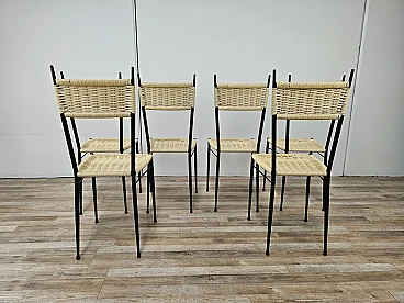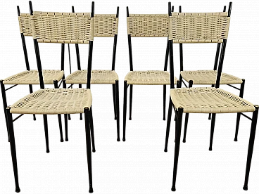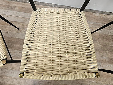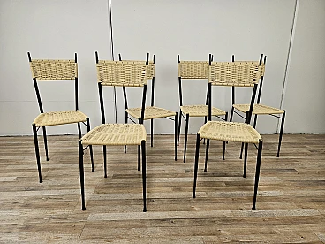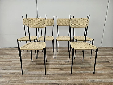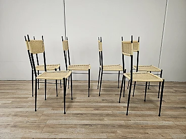6 Mid-Century chairs in iron and woven plastic, 1970s