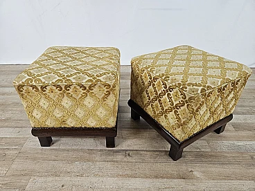 Pair of Art Deco poufs in Upholstered Walnut, 1930s