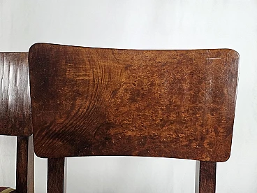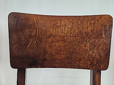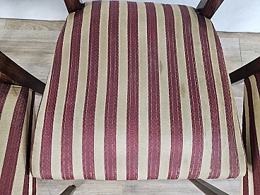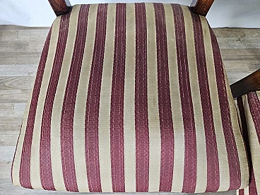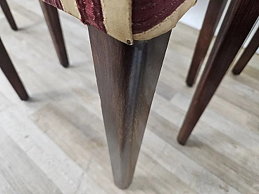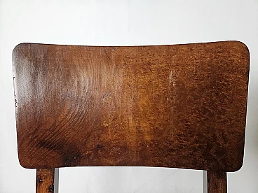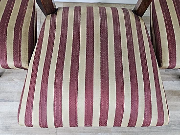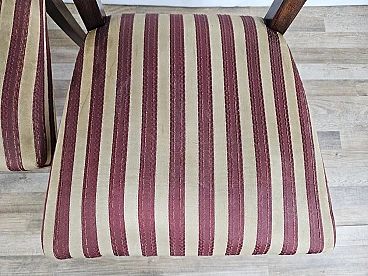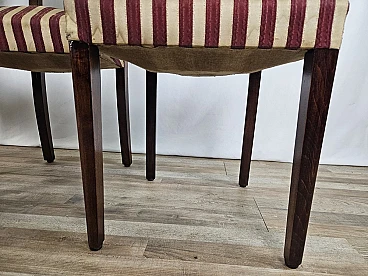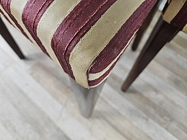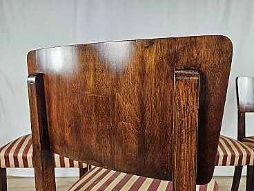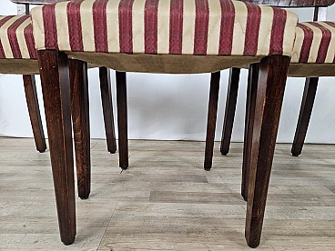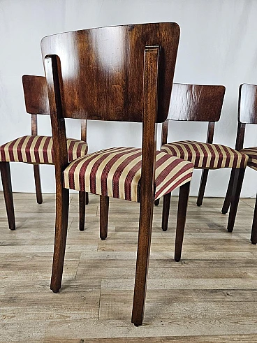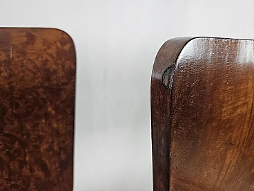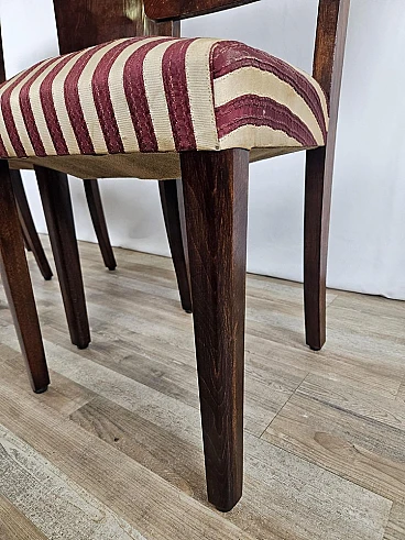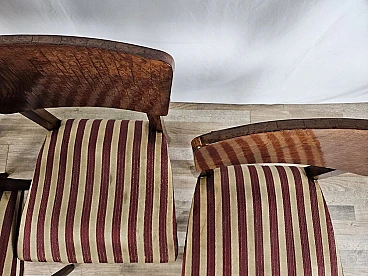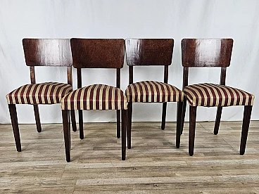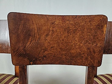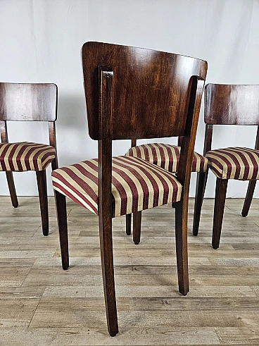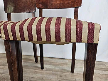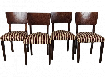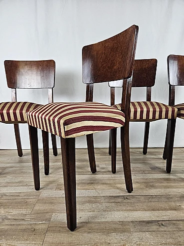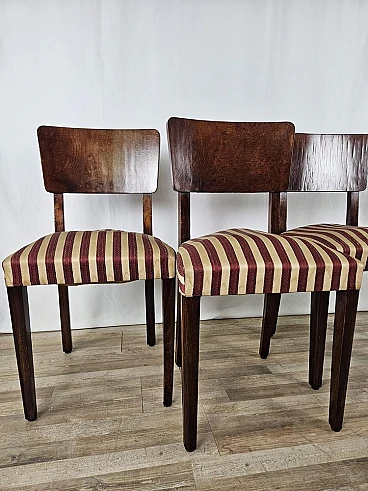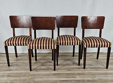 4 Walnut-root chairs from the early 1940s, Art Deco era Italian production. The frame of the chairs has been oil and shellac polished, the seats are upholstered in original fabric of the period so the fabric should be replaced or a seat cover used.
