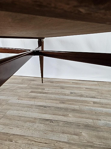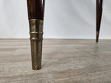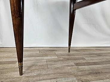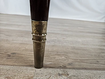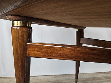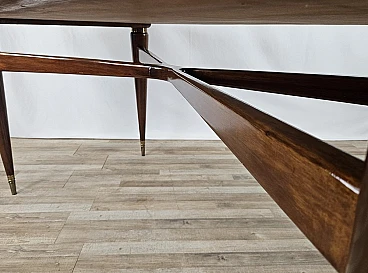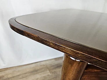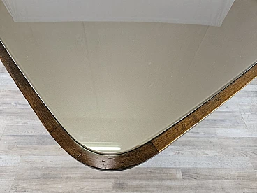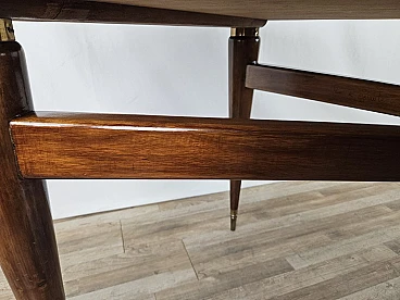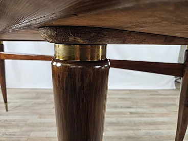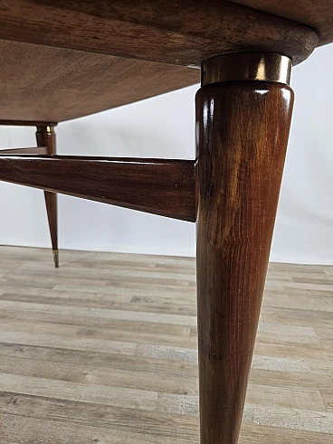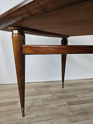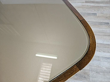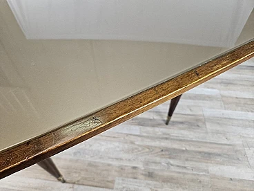 Walnut dining table with glass top and brass decorations, 1940s