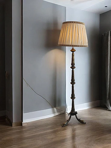 Brass floor lamp with baroque style details, 18th century