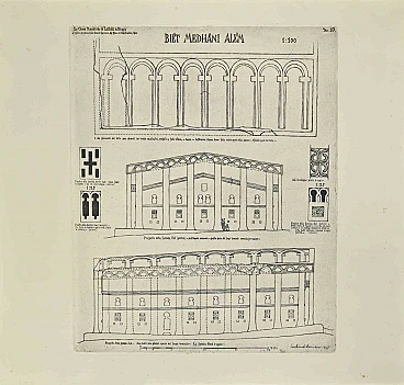 Biet Medhani Alem is a modern artwork realized by Lino Bianchi Barriviera in the 1930s.Black and white etching.Signed on plate.Plate n.19 (as reported on the higher margin).The artwork is from the series "The monolithic churches of Lalibelà and others in Ethiopia". As reported on the artwork "Drawings, engravings by Lino Bianchi Barrivera from the relief by Elio Zacchia (1939-1947)"Between 1938 and 1939 Lino Bianchi Barriviera participated in a study mission to Ethiopia commissioned by Duke Amedeo of Aosta, from which he made several engravings.Good conditions except some foxings.Lino Bianchi Barriviera (Barriviera is the maternal surname that he added to the paternal one in 1933), artist, painter and etcher, was born in Montebelluna (Treviso) in 1906 and died in Acilia (Rome) in 1985. After the first years of his youth, he lived in Venice and Florence, settled finally in Rome in 1935, and at the end of the 70’s moved to Acilia. The fame of the artist is mainly linked to his large production, more than 950 plates, for which he mostly used etchings but also experimented with several other techniques; it has also to be noted that he performed masterfully in other forms of arts, first of all the oil painting, and then wall frescoes and tempera decorations, wood-carving, stained-glass windows, mosaics, ceramics, embossing, stamp engravings and jewel making.