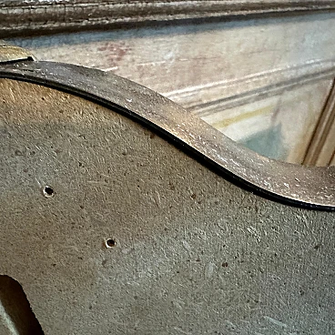 A solid brass wall mirror designed and manufactured in Italy in the manner of Gio Ponti who used this type of mirror in the most beautiful houses in Milan in the 50s, brass it's in a lovely original patina, glass it's the original one. The heart shape was a hallmark of the mirrors designed by Gio Ponti. The wall mirror is a stunning piece of vintage design that embodies the essence of mid-century aesthetics, this mirror showcases his signature blend of functionality, elegance, and modernist influences. The mirror has a bold and eye-catching presence, making it a focal point in any room. The frame of the mirror is crafted from brass, a popular material choice during the mid-century era. The warm golden hue of the brass complements the mirror's reflective surface, creating a harmonious visual effect. The brass frame is sleek and minimalistic, with clean lines and a smooth finish, showcasing the simplicity and sophistication of mid-century modern design. The mirror itself is large in size, allowing for reflection and serving as both a functional and decorative element in the room. The reflective surface is clear and unadorned, emphasizing the mirror's purpose while enhancing the illusion of space and light in the surrounding area. This wall mirror encapsulates the spirit of the 1950s design era. Its combination of organic and geometric shapes, along with the use of high-quality materials, exemplifies the era's commitment to both form and function. This mirror is a timeless piece of design that continues to inspire and captivate enthusiasts of mid-century modern aesthetics.