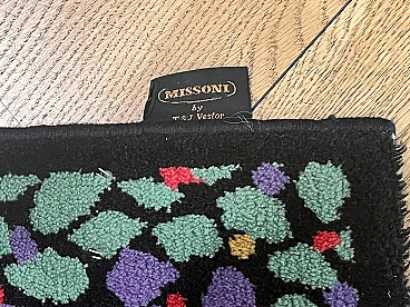 Carpet from the Missoni HOME collection that in the eighties was produced by T&J Vestor which is located in the factories of Golasecca (Varese) on the banks of Ticino, where it was founded in 1921. Since 1983 were introduced textile products made under the license of the line Missoni Home The carpet we propose in pure wool is characterized by a design inspired by the art of glass "Murine" of the island of Murano in the archipelago of Venice. Small mosaic pieces with bright colours are composed to create decor.