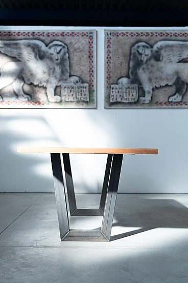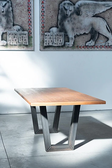 Spruce and iron industrial dining table