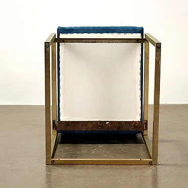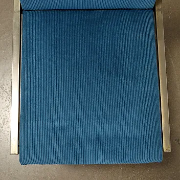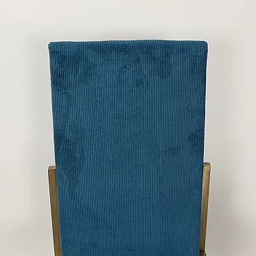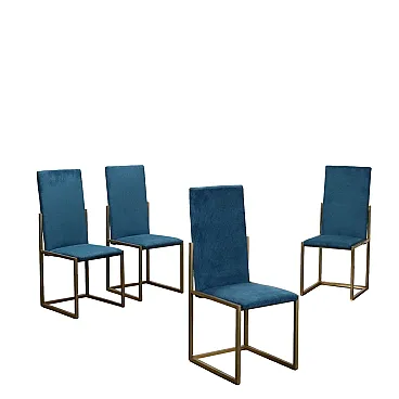 Four chairs with brass frame, foam padding and corduroy upholstery (refurbished, not original of the period). Restored. A group of chairs for sitting comfortably around a table with a vintage style, a taste of yesteryear and a touch of elegance. The product has been carefully restored by our workshop, with upholstery and fabric replacement.