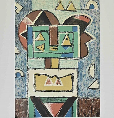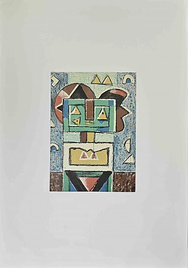 Composition is a lithograph realized by Ibrahim Kodra in 1973.Edition of 100Ibrahim Likmetaj Kodra (22 April 1918 – 7 February 2006) was an Albanian painter.In 1944 he opened his first workshop in Milan; in 1948 he opened a personal and group exposition in the "Art Club" in Rome, where he met and become friend of Pablo Picasso, which often will be contested on artistic reflections. In 1950 he painted frescos in the most important museums and buildings of Milan. Kodra then opened an exposition with Picasso, Henri Matisse, Amedeo Modigliani, Georges Rouault, Dufy and others in the Mostra del Disegno in Chiavari (Italy).Collect a very beautiful artwork of 20th century and discover more on