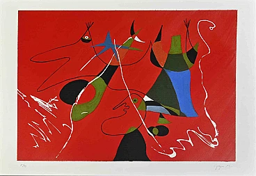 Tribute to Mirò is a colorful artwork realized by Martine Goeyens the Late-20th century.Digital Print.Numbered, Edition, 5/99.Hand-signed in the lower right margin.