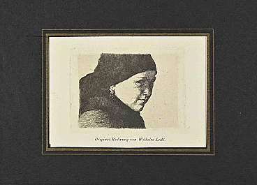 Portrait is an etching on paper realized by Wilhelm Leibl in the Early-20th Century.The artwork is depicted Through strong strokes.Good conditions with slight foxing.