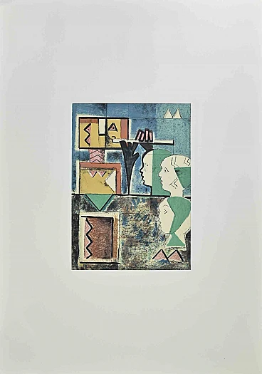 Robot Playing Flute is a lithograph realized by Ibrahim Kodra in 1973.Edition of 100Ibrahim Likmetaj Kodra (22 April 1918 – 7 February 2006) was an Albanian painter.In 1944 he opened his first workshop in Milan; in 1948 he opened a personal and group exposition in the "Art Club" in Rome, where he met and become friend of Pablo Picasso, which often will be contested on artistic reflections. In 1950 he painted frescos in the most important museums and buildings of Milan. Kodra then opened an exposition with Picasso, Henri Matisse, Amedeo Modigliani, Georges Rouault, Dufy and others in the Mostra del Disegno in Chiavari (Italy).Collect a very beautiful artwork of 20th century and discover more on