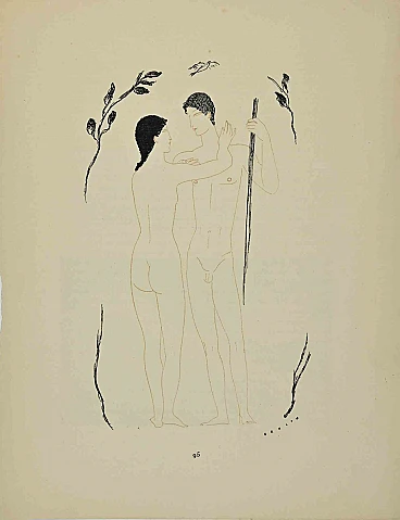 Nudes is a Lithograph realized by Edoard Garcia Benito in the Mid-20th Century.Good conditions with slight foxing.The artwork is realized through deft expressive strokes.