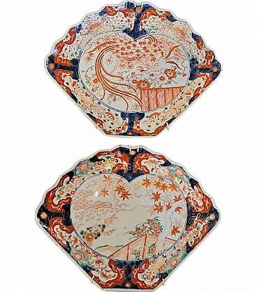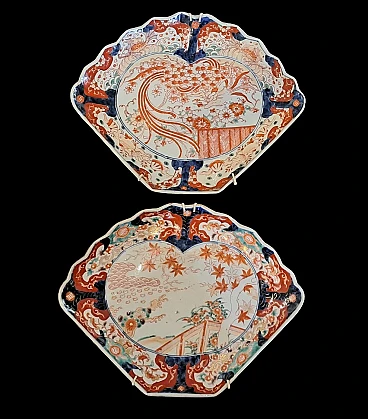 Pair of Japanese Imari fan ceramic plates, 19th century