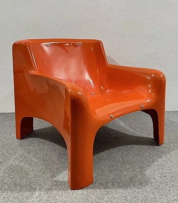 Very rare Gaia model armchair by Carlo Bartoli for Arflex from the 1960s. Structure entirely in fibreglass, orange colour. It does not have cushions. The item is in good conservative condition, there are no major aesthetic or structural defects to report, only slight and obvious signs of aging due to use and age.