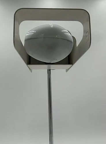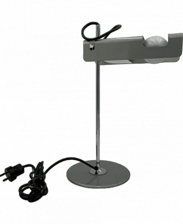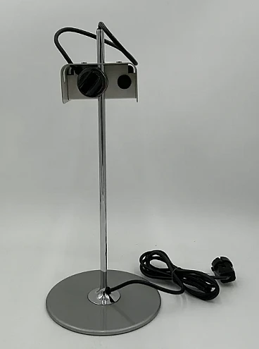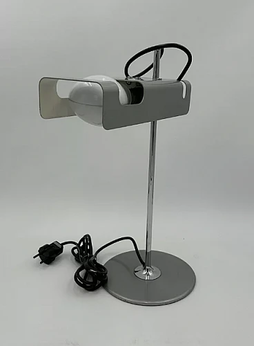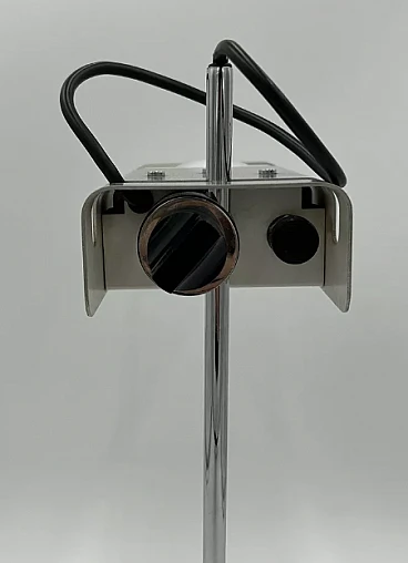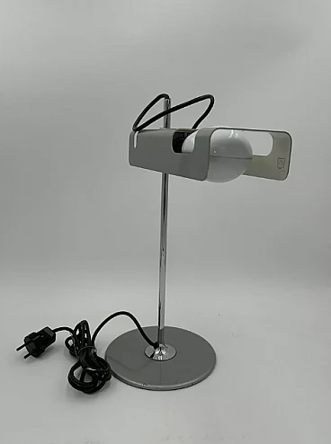 Designed by Joe Colombo in 1965, the Spider series is composed of a single lighting body in fire-painted metal, expressly designed for a special horizontal spot bulb, mounted on a vertical chromed rod and supported by a painted metal base. A melamine joint allows the inclination and repositioning of the reflector. Spider obtained the Compasso d'Oro award in 1967. It is part of the permanent collections of the Triennale di Milano, the Philadelphia Museum of Art, the Kunstmuseum in Düsseldorf, the "Neue Sammlung" Museum in Munich. In 1972 it was among the lamps on display at the important exhibition at the MoMa in New York which marked the international affirmation of Italian design "Italy: the New Domestic Landscape". Base diameter: 18cm.