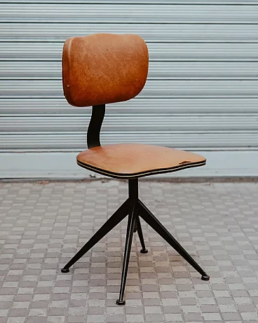 Iron and leather swivel office chair, 1950s
