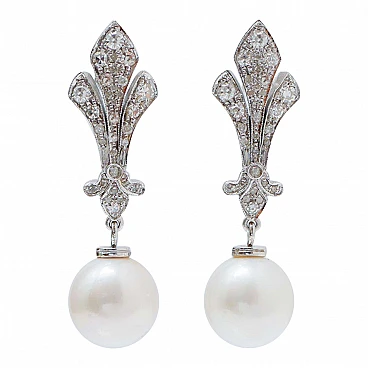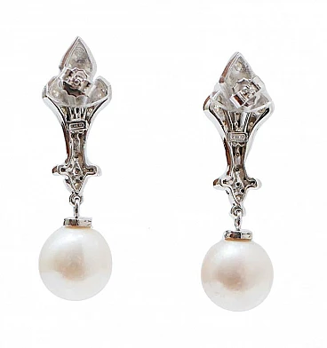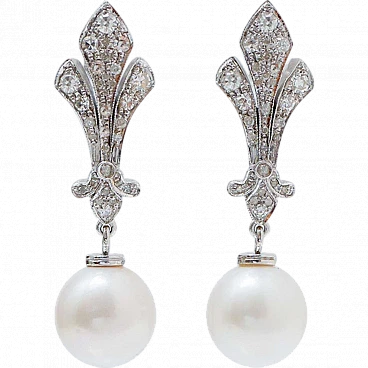 SHIPPING POLICY: No additional costs will be added to this order. Shipping costs will be totally covered by the seller (customs duties included). PS: THIS POLICY IS NOT APPLICABLE TO ITEMS WITH FIX PRICE, ITEMS AT AUCTIONS ,ONGOING PROMOTIONS AND ITEMS ON SALES. Amazing dangle earrings in 9 kt white gold structure mounted with diamonds and, as pendant, a pearl. These earrings were totally handmade by Italian master goldsmiths and they are in perfect conditions. Diamonds 0.95 ct Pearls 4.10 gr Total Weight 8.90 gr RF ++UIFC For any informations, feel free to contact the seller through the message center.