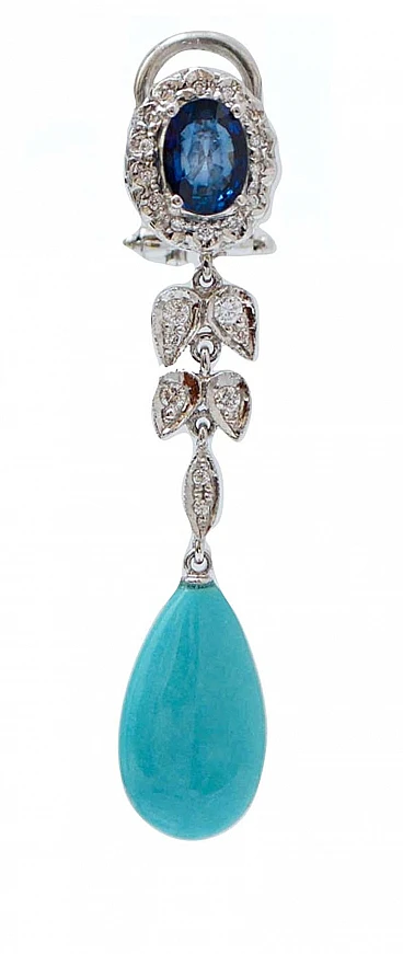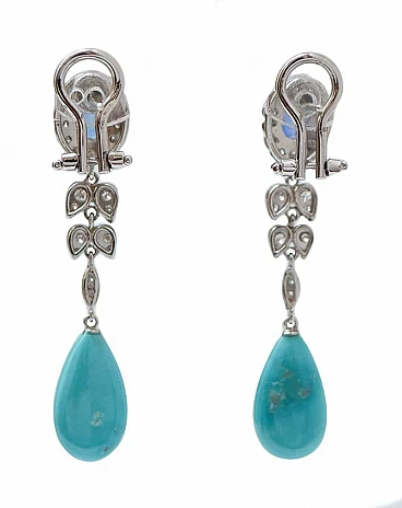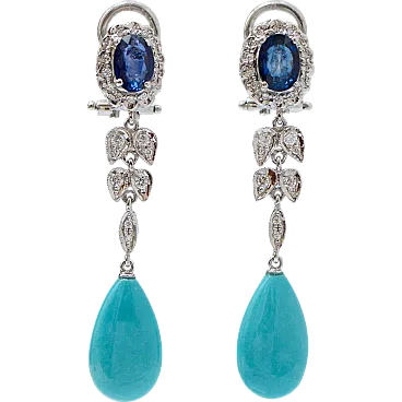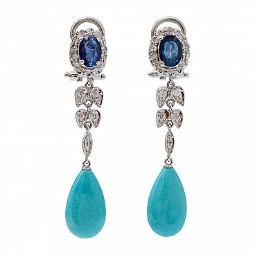 Turquoise, sapphires, diamonds and platinum earrings, 2000s