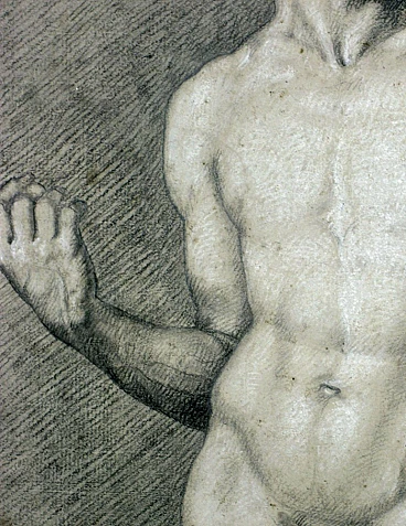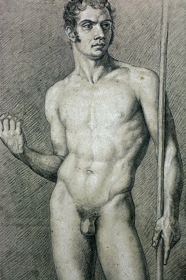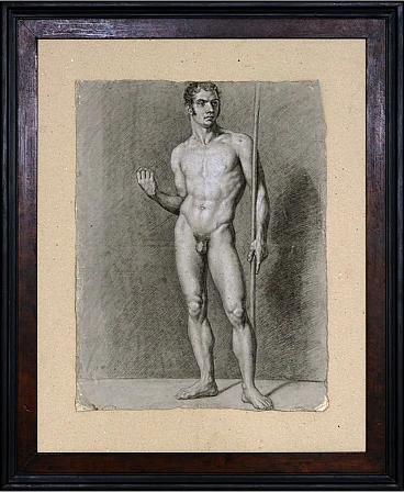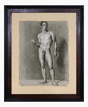 Study of a male nude, charcoal and pencil on paper, early 19th century