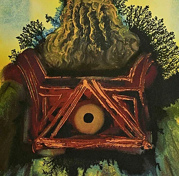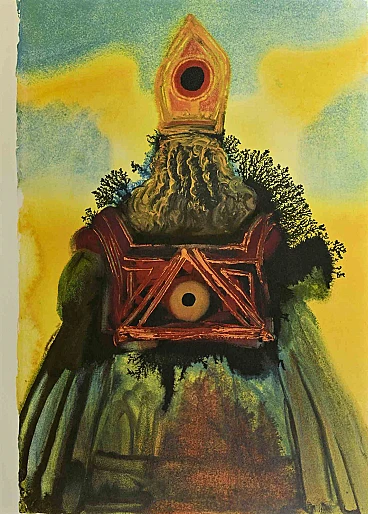 The Ark Of The Covenant is Color lithograph on heavy rag paper realized in 1964. It is part of Biblia Sacra vulgatæ edition is published by Rizzoli-Mediolani between 1967 and 1969.Signed and dated in plate in the right margin.Perfect conditions.Prov. Private Collection, Southern France. Salvador Dalí (Figueres, 1904 – Figueres, 1989) is considered one of the most versatile and prolific artists of the XX century and the founding father of Surrealism. In the course of his long career, he successfully experimented with sculpture, fashion, writing, and filmmaking. In his early use of organic morphology, his work bears the stamp of Pablo Picasso and Joan Miró. His work is also characterized by a fascination with classical art, manifested in the realistic style and religious symbolism of his latest works. Dalí was born near Barcelona to a middle class family. He soon demonstrated an interest in art, and, at the age of 18, he attended the Special Painting, Sculpture and Engraving School of San Fernando in Madrid. His eccentricity was notorious, and at first even more famous than his works. When he traveled to Paris, he met Pablo Picasso in his studio and took inspiration from Cubism. In 1928, he collaborated with Buñuel on Un Chien Andalou, which eventually became a manifest of Surrealism. Surrealists considered recruiting Dalí into their circle. In the next years, Dalí’s paintings illustrated his theories about paranoia. He painted bodies, corps, objects that reflected sexuality, anxiety and fear. In the 1950s, Dalí’s paintings focused on religious themes reflecting his interest in the supernatural. During that period, he stayed at the St. Regis hotel, where he met Andy Warhol, another eccentric personality that was considered a modern influence for the setting Dalí produced earlier. Dalí epitomizes the idea that life is the greatest form of art; André Breton said about him: “It is with Dalí that, for the very first time, the windows of the mind are wide open”.