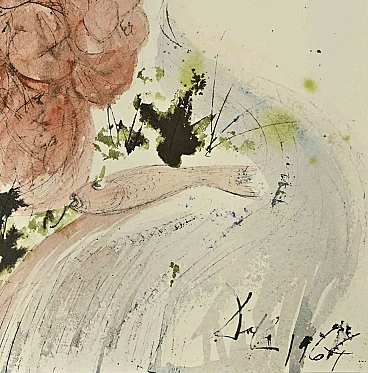 Holy Bible - is Color lithograph on heavy rag paper realized in 1964. It is part of Biblia Sacra vulgatæ edition is published by Rizzoli-Mediolani between 1967 and 1969.Signed and dated in plate in the right margin.Perfect conditions.Prov. Private Collection, Southern France. Salvador Dalí (Figueres, 1904 – Figueres, 1989) is considered one of the most versatile and prolific artists of the XX century and the founding father of Surrealism. In the course of his long career, he successfully experimented with sculpture, fashion, writing, and filmmaking. In his early use of organic morphology, his work bears the stamp of Pablo Picasso and Joan Miró. His work is also characterized by a fascination with classical art, manifested in the realistic style and religious symbolism of his latest works. Dalí was born near Barcelona to a middle class family. He soon demonstrated an interest in art, and, at the age of 18, he attended the Special Painting, Sculpture and Engraving School of San Fernando in Madrid. His eccentricity was notorious, and at first even more famous than his works. When he traveled to Paris, he met Pablo Picasso in his studio and took inspiration from Cubism. In 1928, he collaborated with Buñuel on Un Chien Andalou, which eventually became a manifest of Surrealism. Surrealists considered recruiting Dalí into their circle. In the next years, Dalí’s paintings illustrated his theories about paranoia. He painted bodies, corps, objects that reflected sexuality, anxiety and fear. In the 1950s, Dalí’s paintings focused on religious themes reflecting his interest in the supernatural. During that period, he stayed at the St. Regis hotel, where he met Andy Warhol, another eccentric personality that was considered a modern influence for the setting Dalí produced earlier. Dalí epitomizes the idea that life is the greatest form of art; André Breton said about him: “It is with Dalí that, for the very first time, the windows of the mind are wide open”.