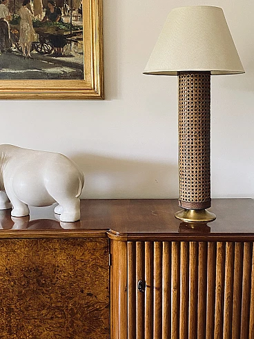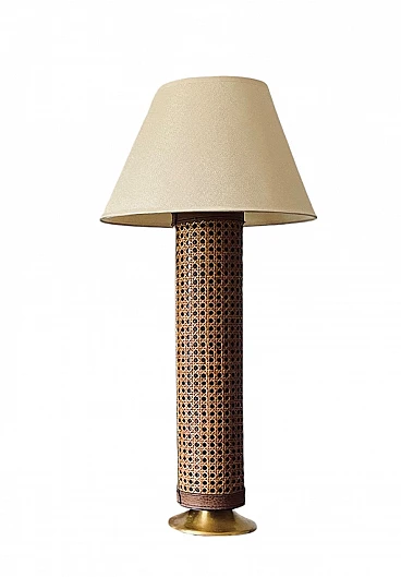 Lamp base brass and Vienna straw, 1970's