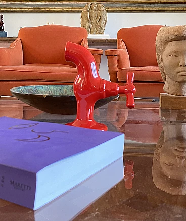 Red tap shaped ceramic, JC Peiré, France ca. 1970