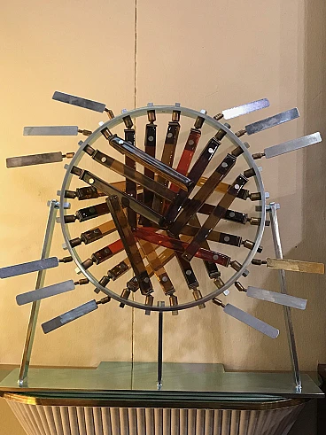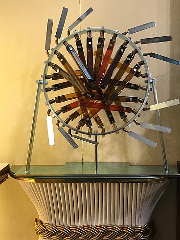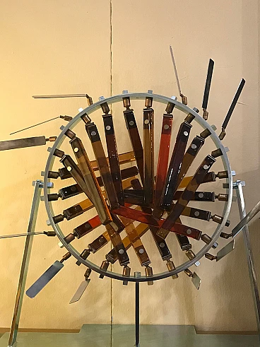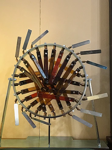 Work by the artist Marcello Avenali (1912-1981). Steel and glass sculpture, created in 1969. In 1970 it was multiplied for an installation for the Banco Santo Spirito (Vatican Bank) at the Rome headquarters in Piazza del Quirinale, then dismantled in 1980.
