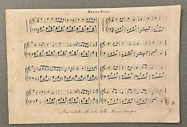 Air Reduced to the Notes of European Music is a lithograph on paper realized in the 19th Century.The artwork is represented in a well-balanced composition with strong strokes.Very good condition.