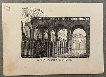 Royal Palace in Genoa is a lithograph on paper realized in the 19th Century.The artwork is represented in a well-balanced composition with strong strokes.Very good condition.