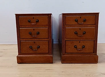 Pair of oak and leather office chests of drawers, late 19th century