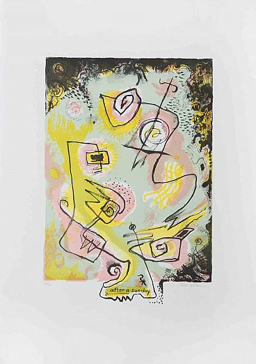 After a sunday is a contemporary artwork realized by Le Pond in 1970s.Mixed colored lithograph.Hand signed on the lower margin.Numbered on the lower margin.Edition of 20/100