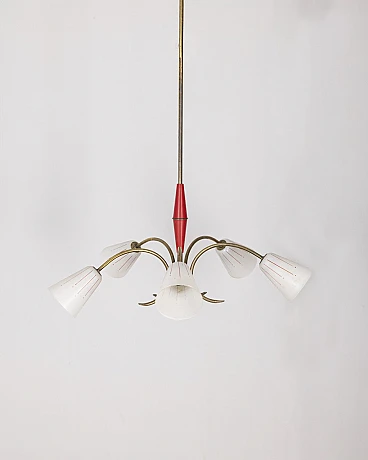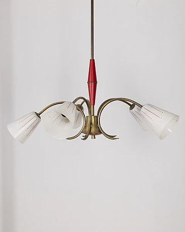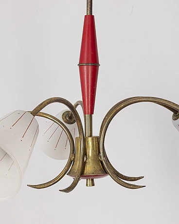 Vintage Italian Pendant Light in Red Metal and Glass, 1960s
