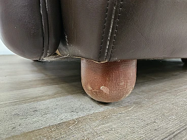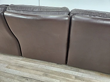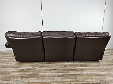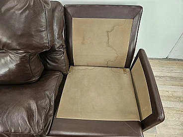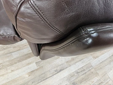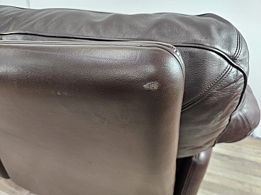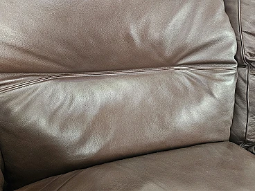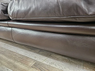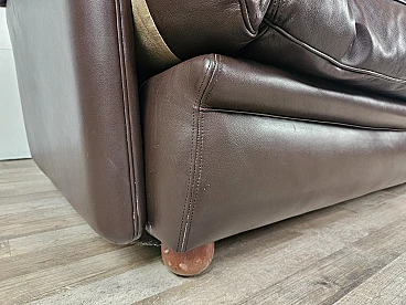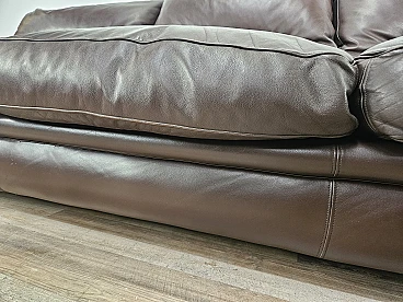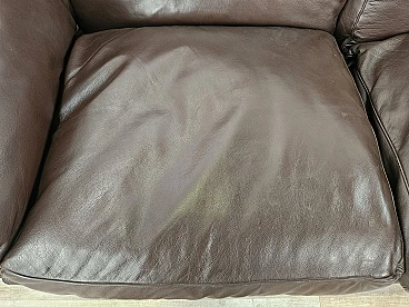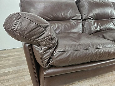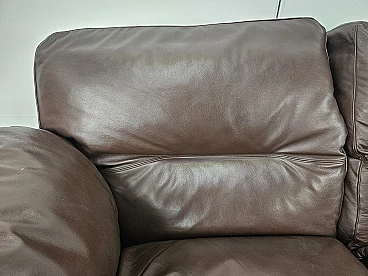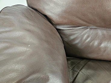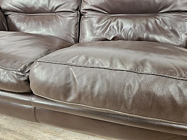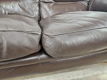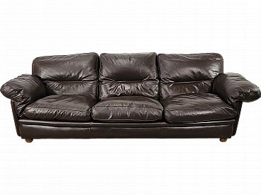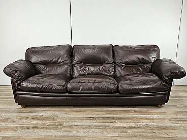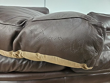 Elegant dark brown leather sofa with three large and comfortable seats. Soft and welcoming padded cushions, perfect for a moment of relaxation in a waiting room or in a modern living room. The cushions are perforated with the writing 'FRAU' as per tradition. A tradition of elegance and Italian design from the 1970s. The sofa is in very good condition as can be seen from the photos, small mark on a cushion on the left side. As far as possible it has been cleaned with a specific professional product for leather.