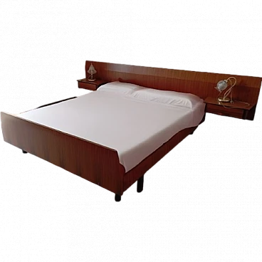 Rosewood veneered double bed frame with hanging nightstands, 1960s