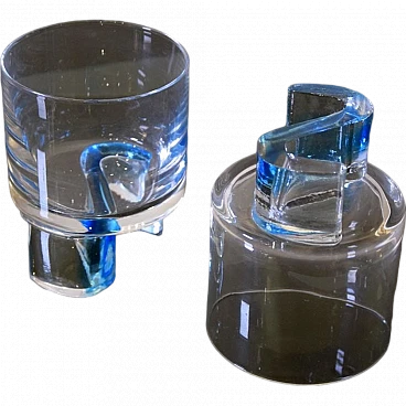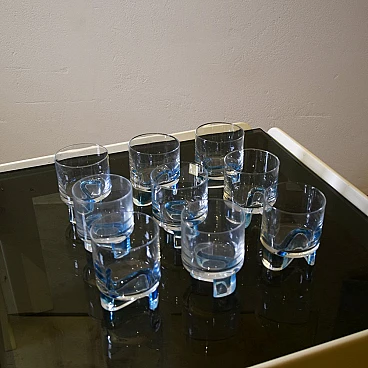 9 Glasses in colored glass worked in the style of Joe Colombo, 1970s.