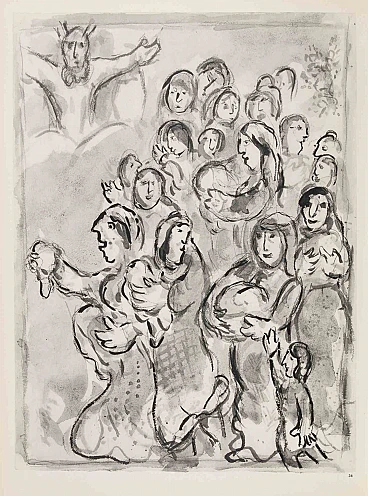 Héliogravure on brown-toned paper, so signature.Héliogravure on bot sheets, recto and verso.Edition of 6500 unsigned copies. Printed by Mourlot and published by Tériade, Paris.Ref. Mourlot, F., Chagall Lithograph II 1957-1962, A. Sauret, Monte Carlo, 1963.Very good condition.