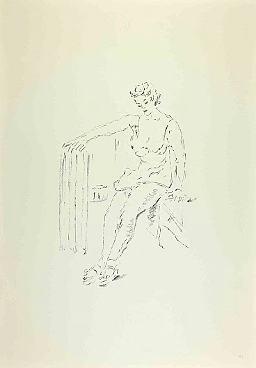 Woman is an artwork realized by Filippo De Pisis (1896, Ferrara - 1956, Milano) in 1968.Black and white lithograph.Good condition.Not signed.The image inside has dimensions 18x27.Published in the volume "De Pisis Lito, Edizioni del Galeone, 1969.Discover More Modern And Contemporary Artworks On