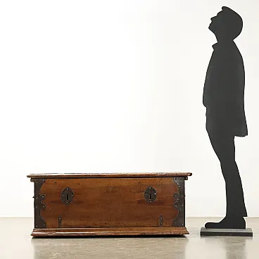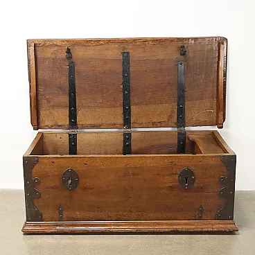 Antique chest walnut wrought iron metal Italy, XVIII Century