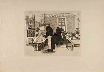 Etching and Aquatint realized by Auguste Lançon (1836-1887) in 1883. Published by A. Quantin, Paris, in an edition of 250 copies.This Series depicts scenes from the daily life of Trappist Monks.Good condition, except for some very minor stains and some minor signs of age.