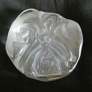 Murano clear glass bas-relief Tile, iridescent with figure of Madonna with child. Unsigned and attributed to Fucina degli Angeli, Italy 1970s. Minor signs of wear.