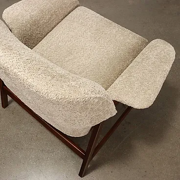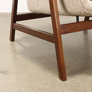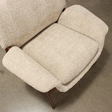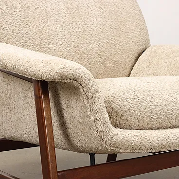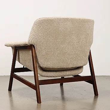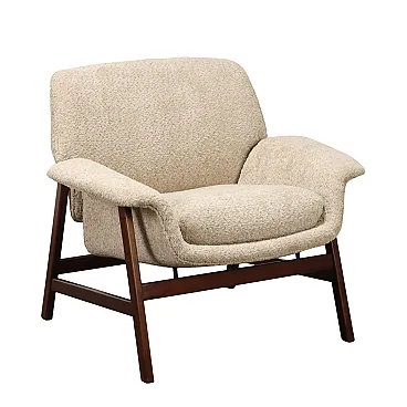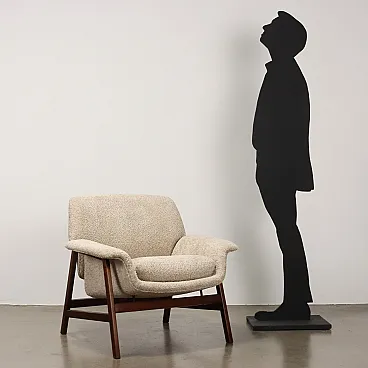 Armchair designed by Gianfranco Frattini and produced by Cassina since the 1950s. Stained wood frame, seat, backrest and cushion in foam, fabric upholstery.