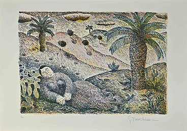 Gaetano Tranchino, Figura e Palme, Lithograph 1960s-1970s