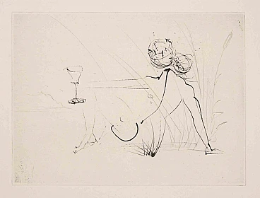 Salvador Dalì, Reclined Nude with Glass - from "Les Amours de Cassandre", Etching Drypoint 1960s-1970s