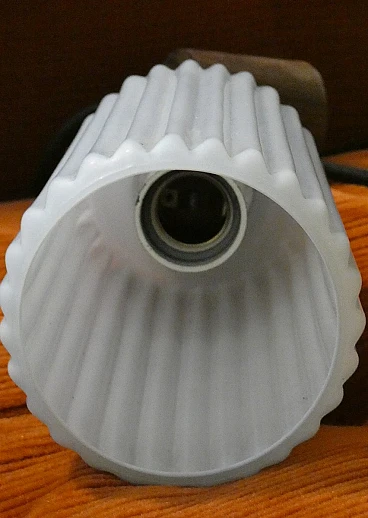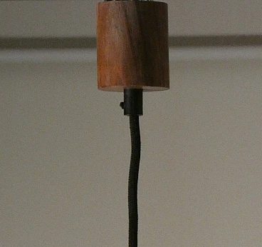 Mid-Century Pendant Lamp in Opaline Glass and Teak, Italy, 1950s
