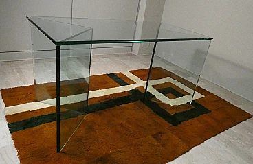 Bacco Transparent Glass Desk attributed to Tonelli, Italy, 1980s