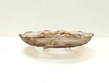 Made in Germany Walther and Sohne of Radeberg, 1930s - 1940s. The company was well known for making high quality pressed glass. Some of their flint and coloured glass has been attributed to Sowerby of Gateshead. Walther sold their Cloud Glass under the trade name ORALIT. The name brings to mind Davidson's ORA Red Cloud Glass. It is not clear whether there was any business relationship between the two companies. It is more likely that the Walther company was trying to associate it's products with Davidson's well established Cloud Glass Line. The Oralit range appears to have been started in 1932, a few years after Davidson introduced ORA. This large three-footed platter has a wavy edge and a moulded pattern on the underside. It is a vintage piece, therefore it might show slight traces of use, but overall it can be considered as in excellent original condition and ready to become a piece in a home. Measures: Diameter 30.5 cm Height 7.5 cm.