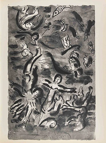 Héliogravure on brown-toned paper, no signature.Héliogravure on bot sheets, recto and verso.Edition of 6500 unsigned copies. Printed by Mourlot and published by Tériade on the Art Magazine "Verve", no. 37-38, Paris.Ref. Mourlot, F., Chagall Lithograph II 1957-1962, A. Sauret, Monte Carlo, 1963.Very good condition.